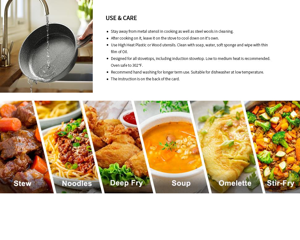 - Easy To Clean - Nonstick and no rivets, this chef pan is super easy to clean. Simply wipe it over with a sponge and warm soapy water. Make your daily food intake easier to make.